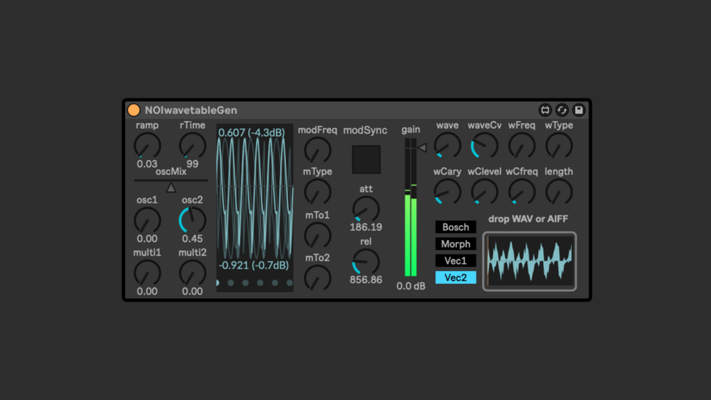 NOImodGenにウェーブテーブルシンセサイザー機能を追加しました。